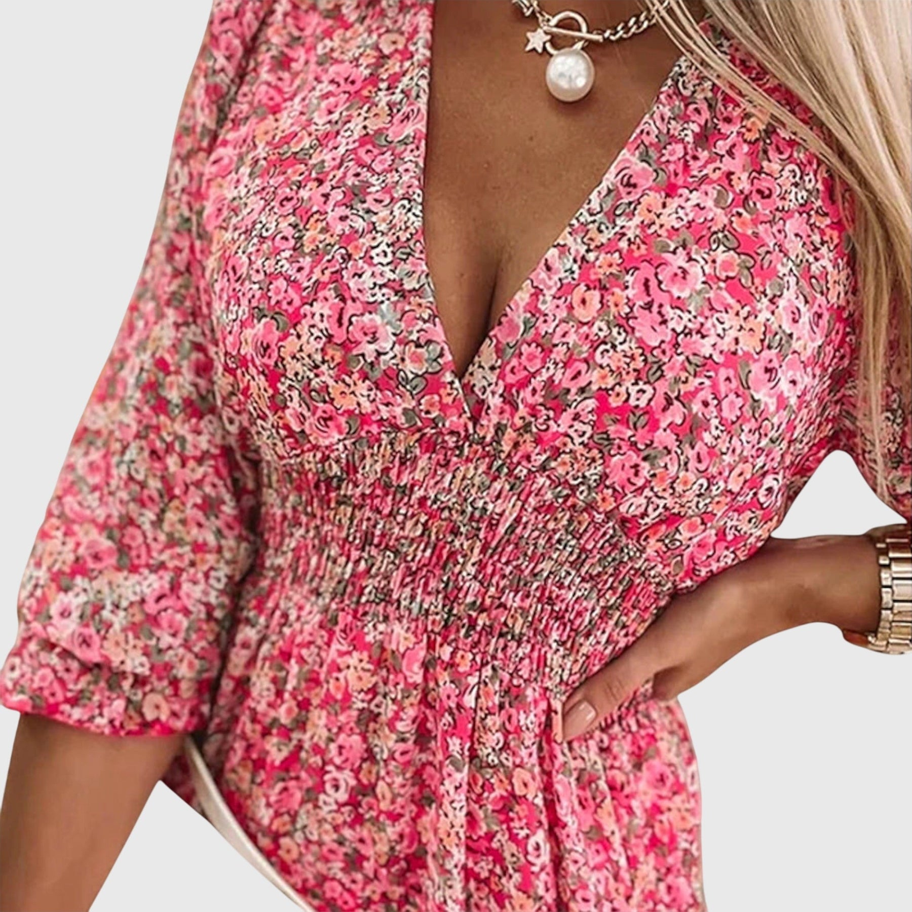 Vstopite v poletje z obleko Elisa™ s cvetličnim vzorcem in napihnjenimi rokavi, kjer se lepota sreča z udobjem. Ta očarljiva obleka ima čudovite cvetlične napihnjene rokave in igriv rob, zaradi česar je nepogrešljiv kos v vaši garderobi za toplo vreme. Je lahka in zračna, zato vam bo v sončnih dneh ostala hladna. Ta obleka, ki je popolna za vsako sproščeno poletno priložnost, brezhibno združuje stil in vsestranskost.