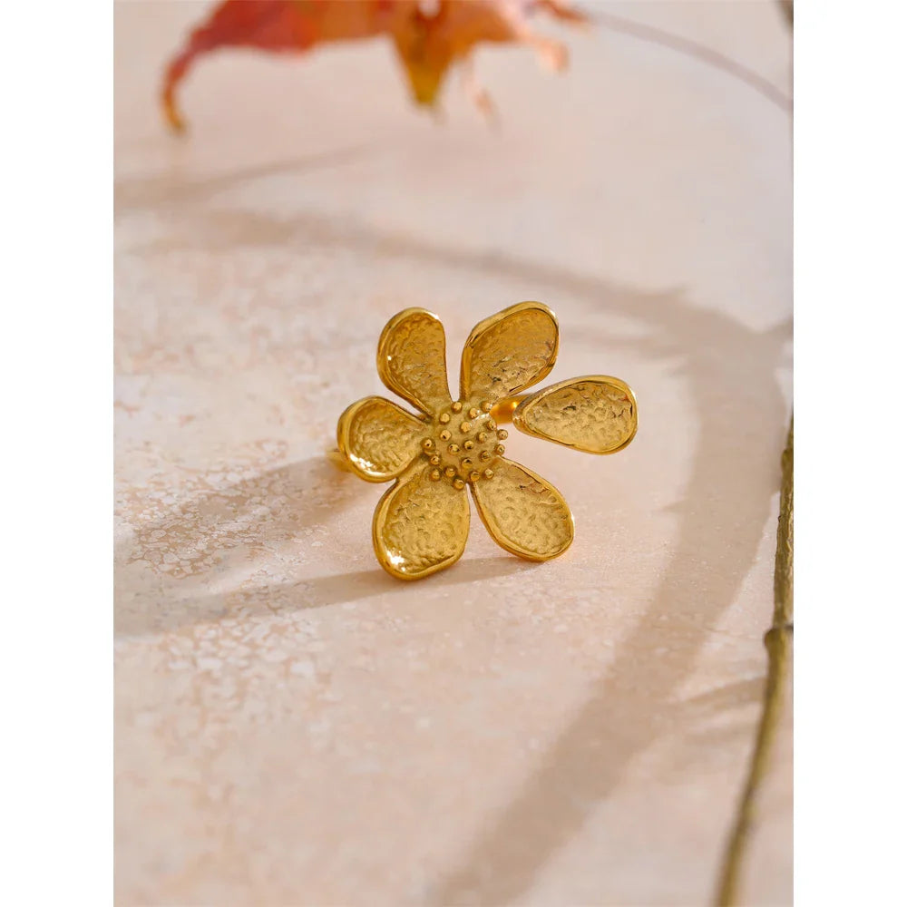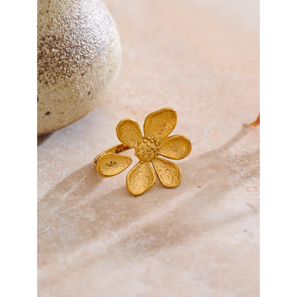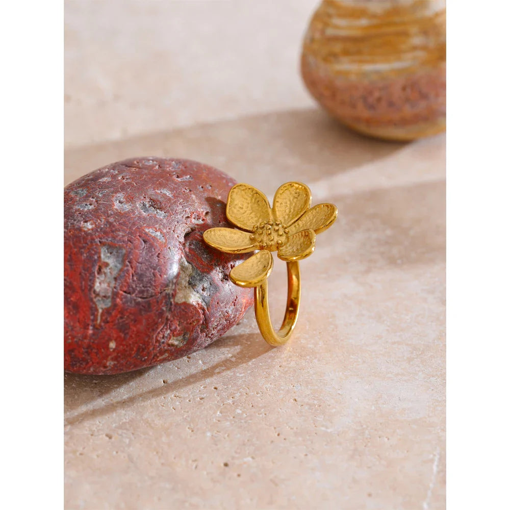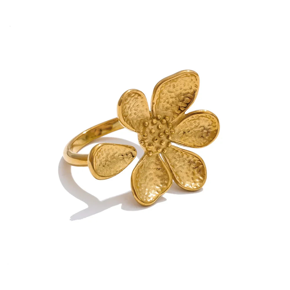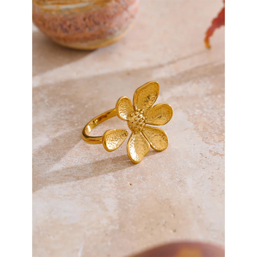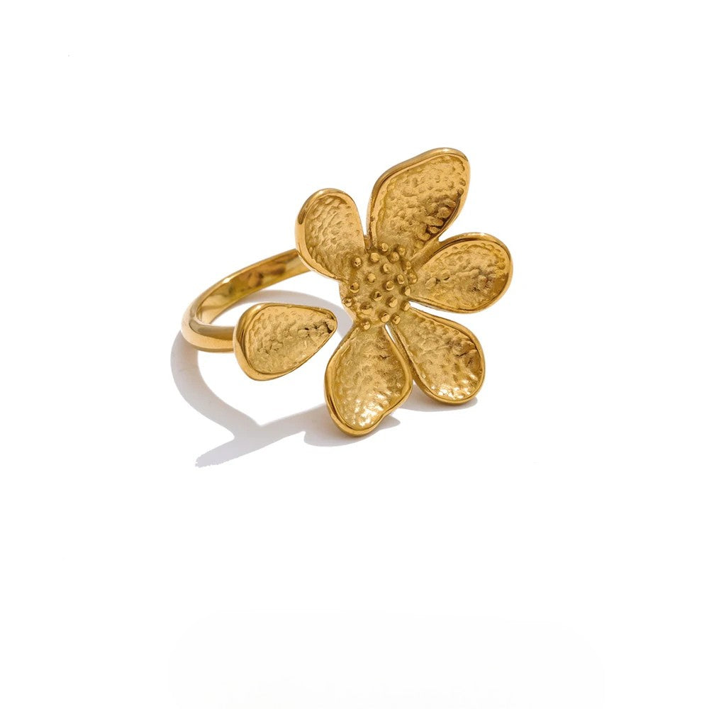 Prstan Emmie z manjkajočim cvetnim listom – šik dizajn z odprtim obročem | Huna Jewelry