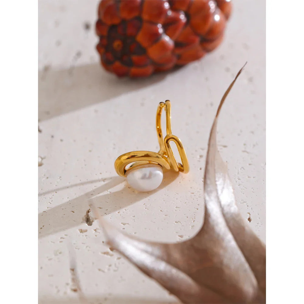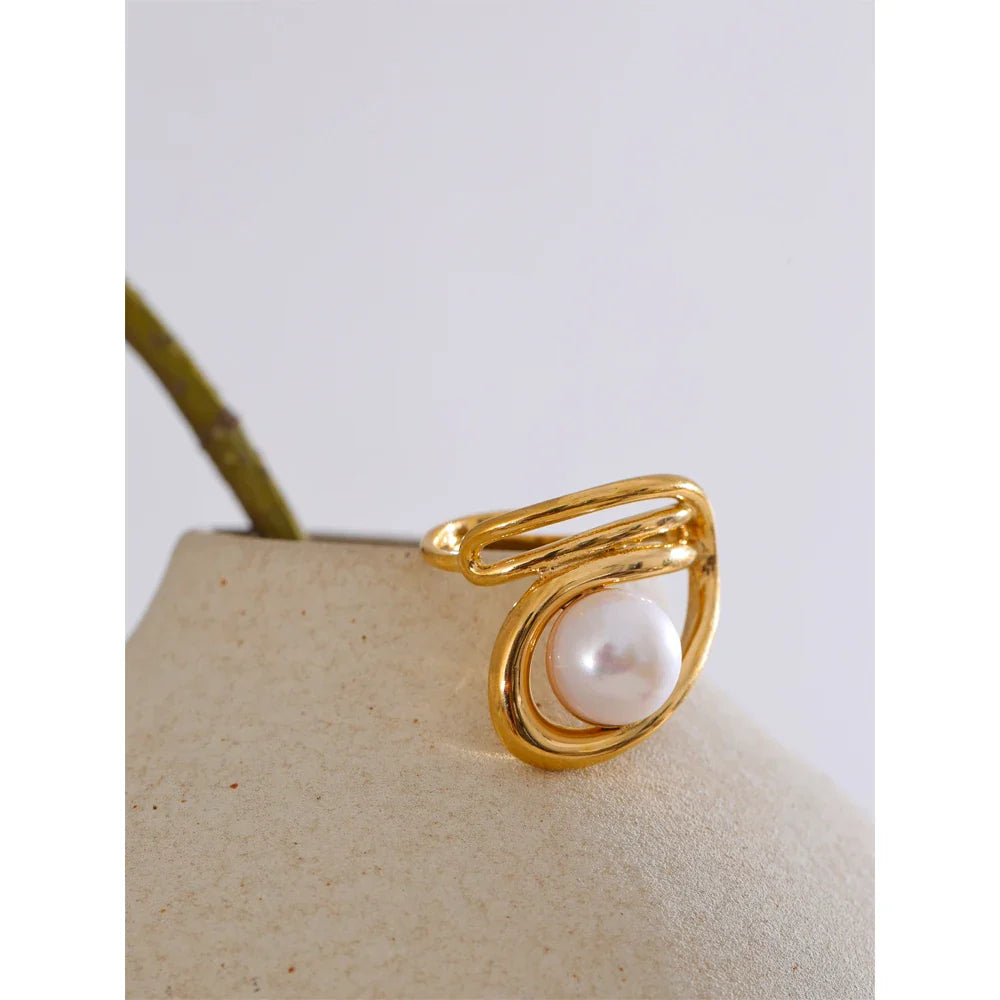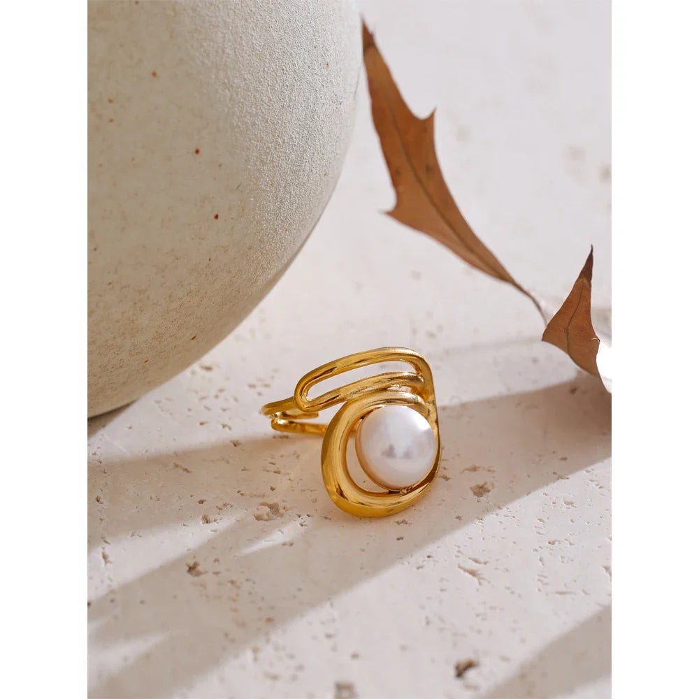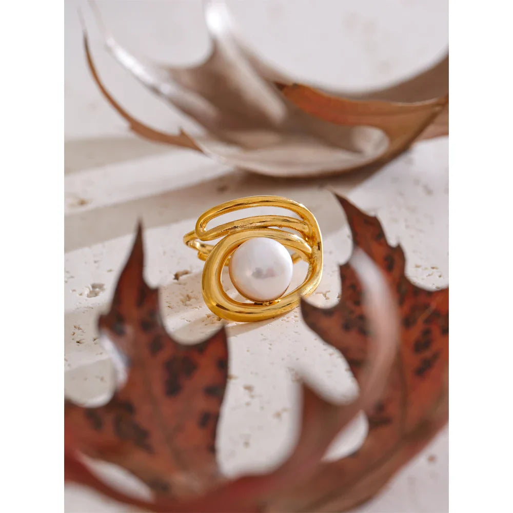 Dodajte svoji zbirki pridih brezčasne elegance s prstanom Helen Pearl znamke Huna Jewelry. Ta prstan z nežnim zavitim obročem in sijočim sladkovodnim biserom v osrednjem delu pooseblja prefinjen čar. Izdelan je iz vrhunskega nerjavečega jekla z 18-karatnim PVD zlatom, je vodoodporen, odporen proti oksidaciji in zasnovan za vsakodnevno nošenje. Ne glede na to, ali ga nosite samostojno za minimalističen videz ali pa ga kombinirate za dodaten glamur, je ta vsestranski in nastavljiv kos nakita popoln za vsako priložnost.